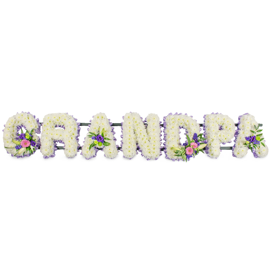 Please note, this tribute comes with a letter bar on which the letters must be attached. If flowers are going to funeral home ensure the directors are aware they will be receiving flowers which will need minimum proping for a proper display.